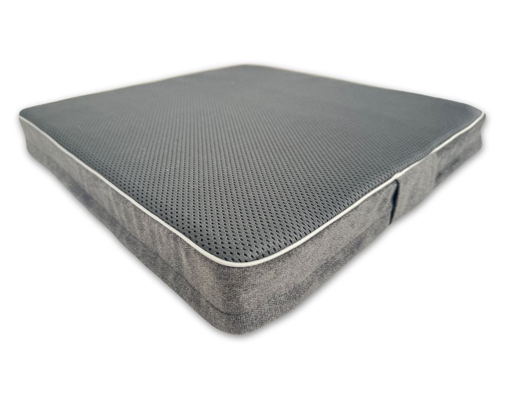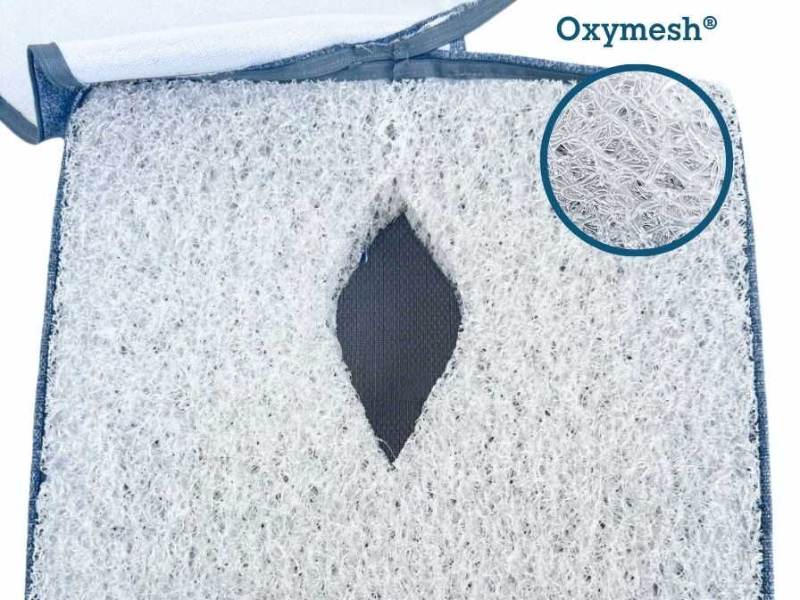 This comfortable chair cushion, made from thousands of meters of patent-pending Oxymesh® fibers, allows for 90% airflow and 5 times better cooling than memory foam (the material typically used in regular chairs).
