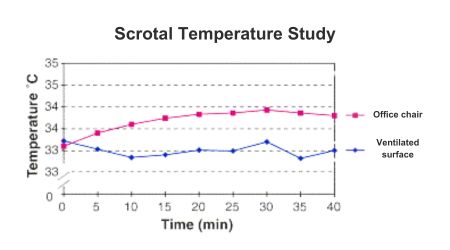 In fact, a study comparing the increase in scrotal temperature while sitting on different types of chairs found a 3°C increase in scrotal temperature after only 20 minutes of sitting in a conventional office chair [2].